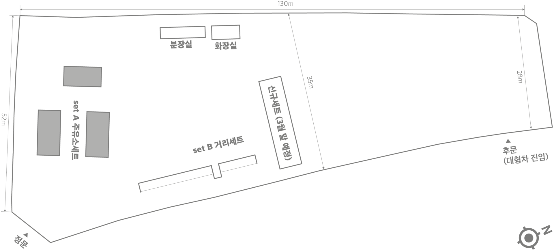 에이커스 가스스테이션는 미국 빈티지 컨셉의 주유소, 그로서리 스토어, 드라이브 스루, 개러지, 컨셉 월 등을 활용할 수 있는 1,700평 규모의 대형 세트 스튜디오 입니다.